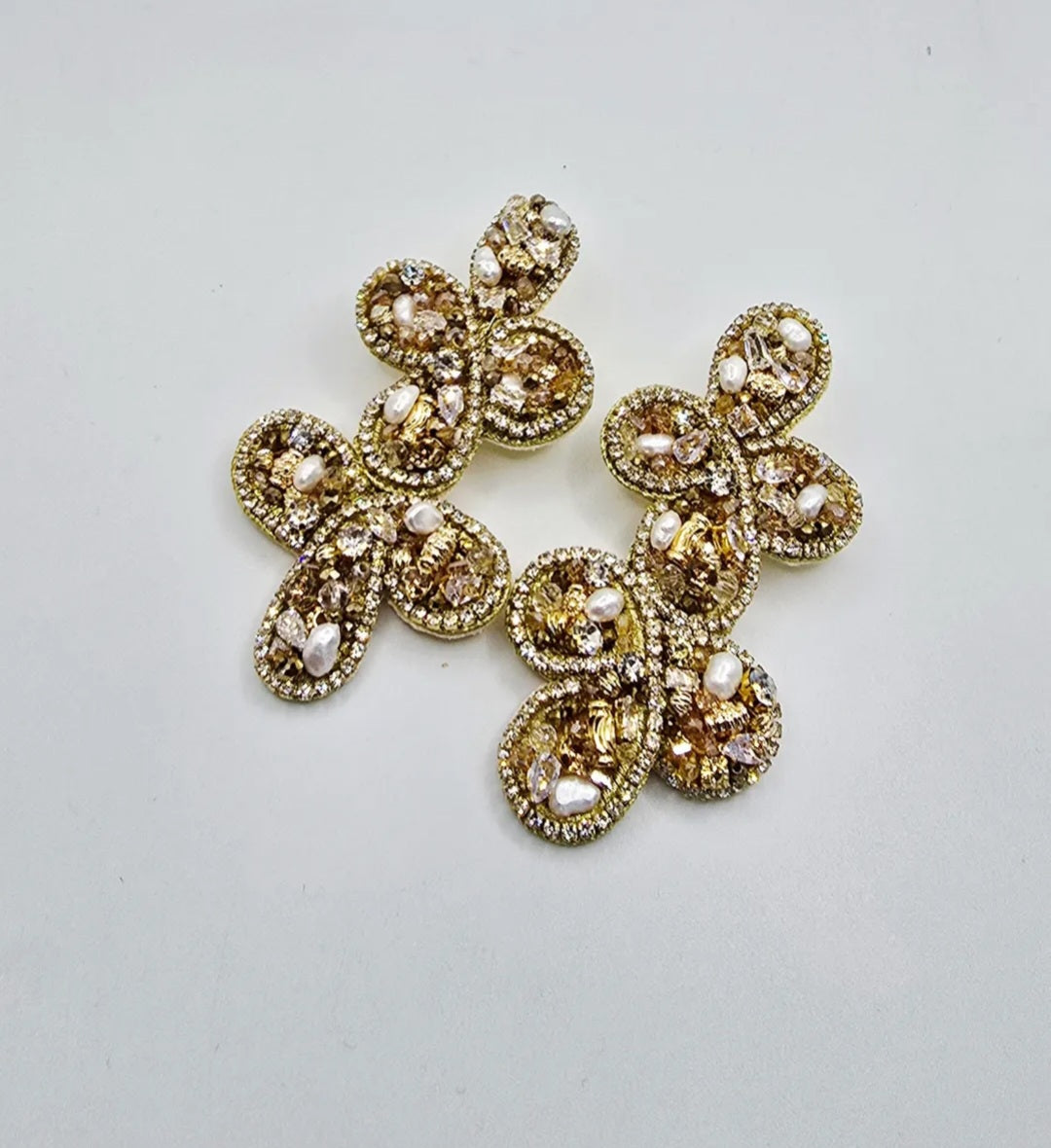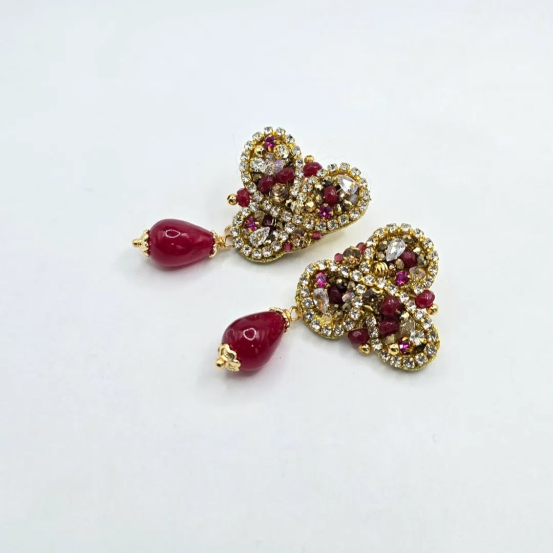 Precio regular $70.000Precio en oferta $70.000 Precio regularPrecio unitario / porAros tejidos a mano con piedras y cristales, Vástago acero inoxidable