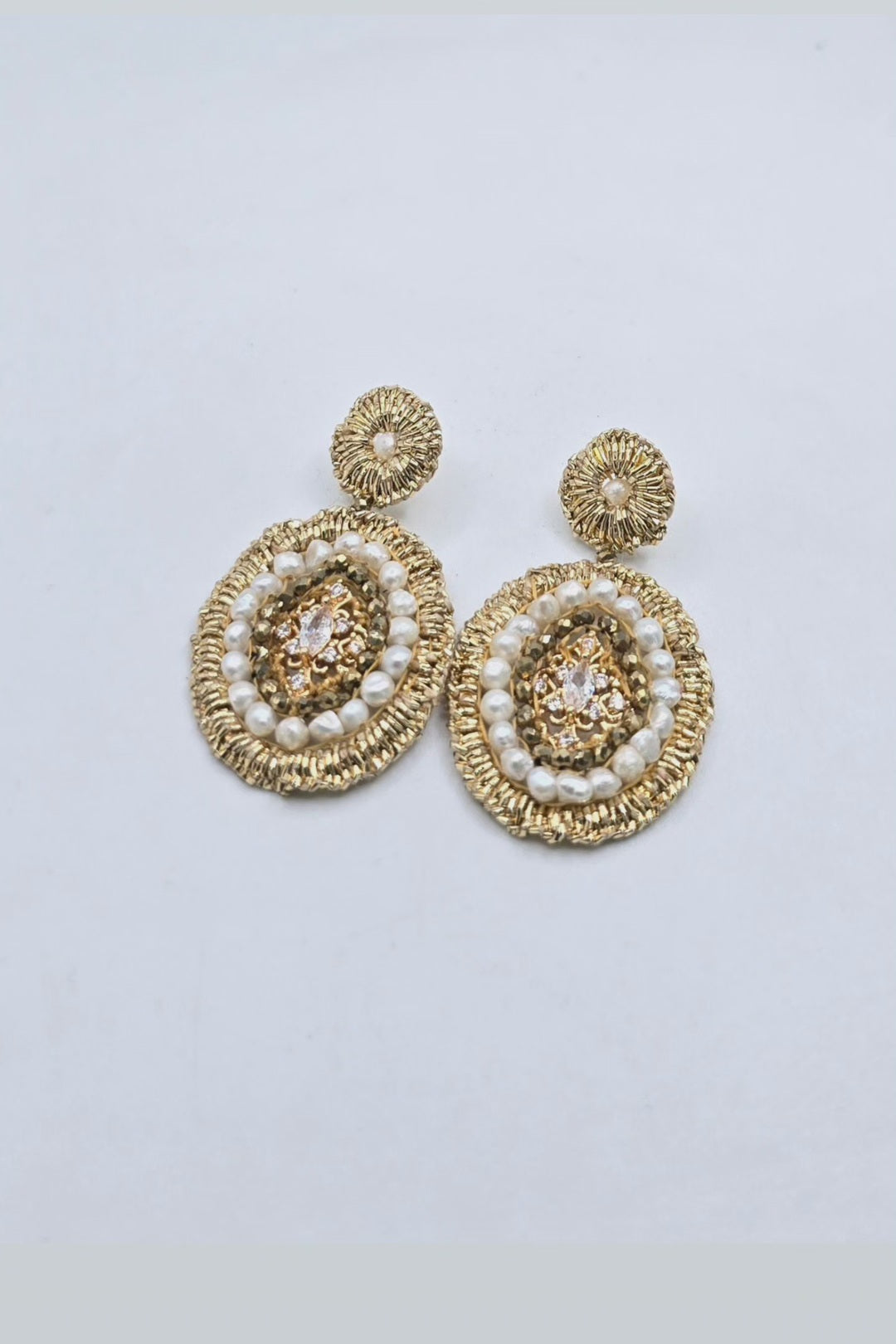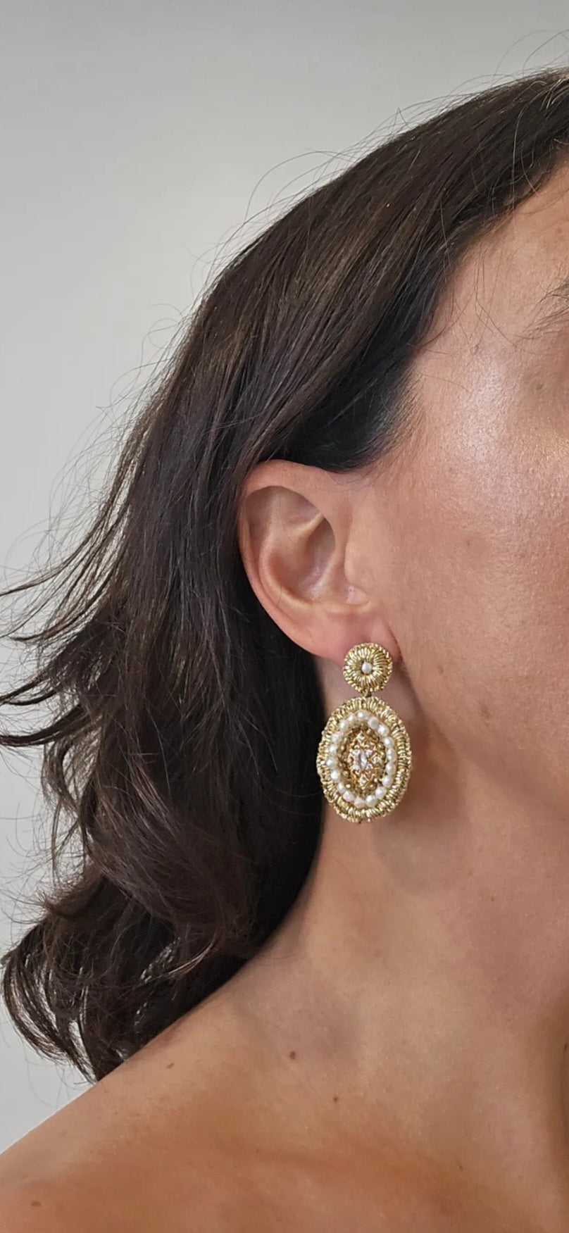 Aro Tejido a mano con fibra dorada , cristales y perla