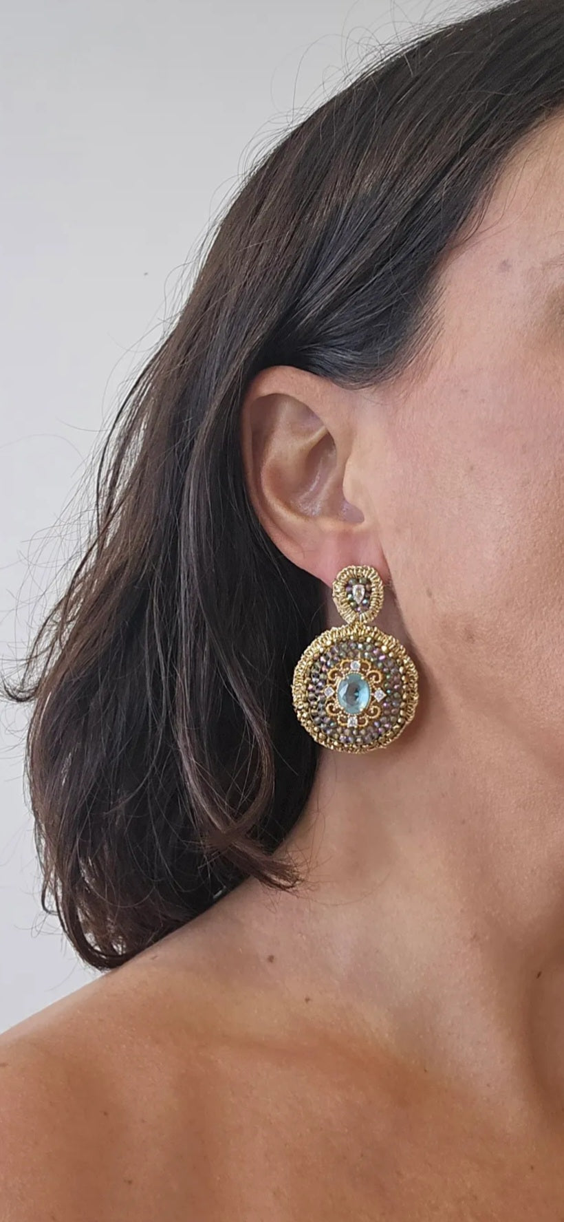 Aro Tejido a mano con fibra dorada y cristales